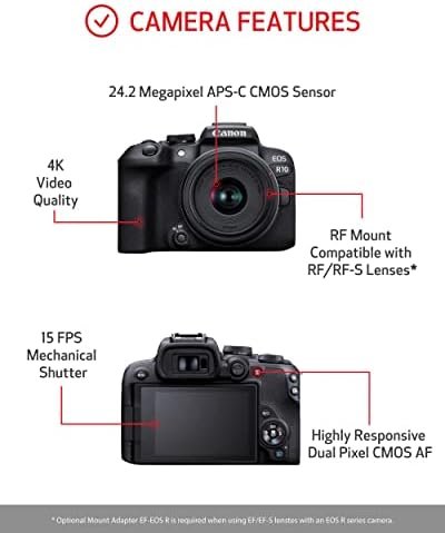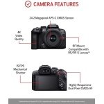 The EOS R50 camera makes photography fun, simple, and convenient with intuitive photo functions that capture beautiful images automatically, just as you imagine them. A host of video functions such as 6K oversampled 4K 30p capture and Dual Pixel CMOS AF II makes the EOS R50 a great camera for movie recording and vlogging as well. The 24.2 Megapixel APS-C size CMOS Image sensor and DIGIC X image processor ensure high image quality in a compact and lightweight form factor.