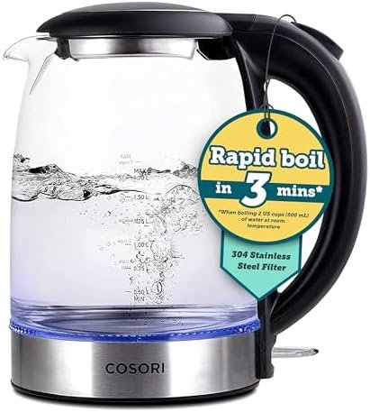SUPERIOR MATERIALS – Crafted with high-quality borosilicate glass and 304 stainless steel, the electric tea kettle ensures the safety and purity of your water.