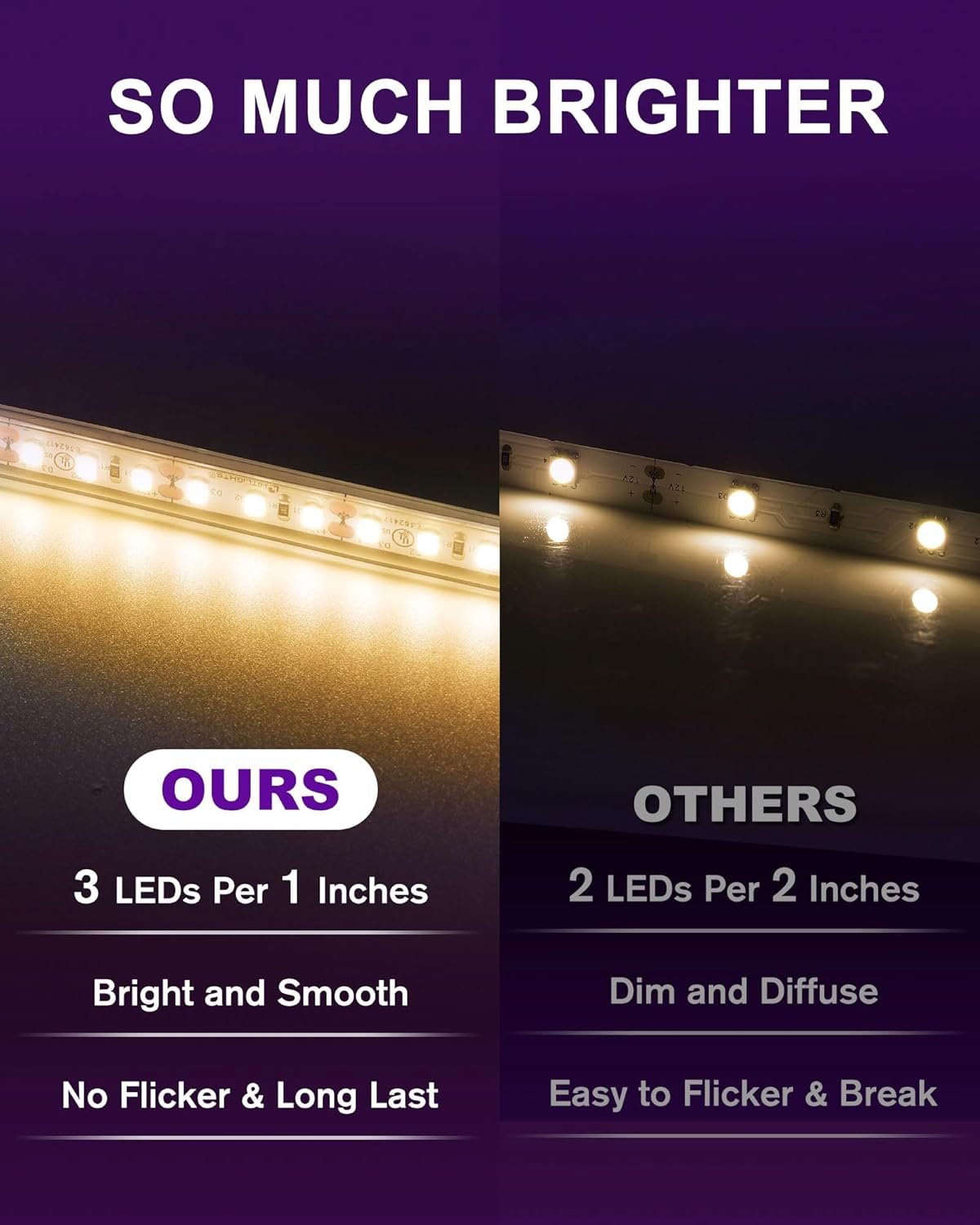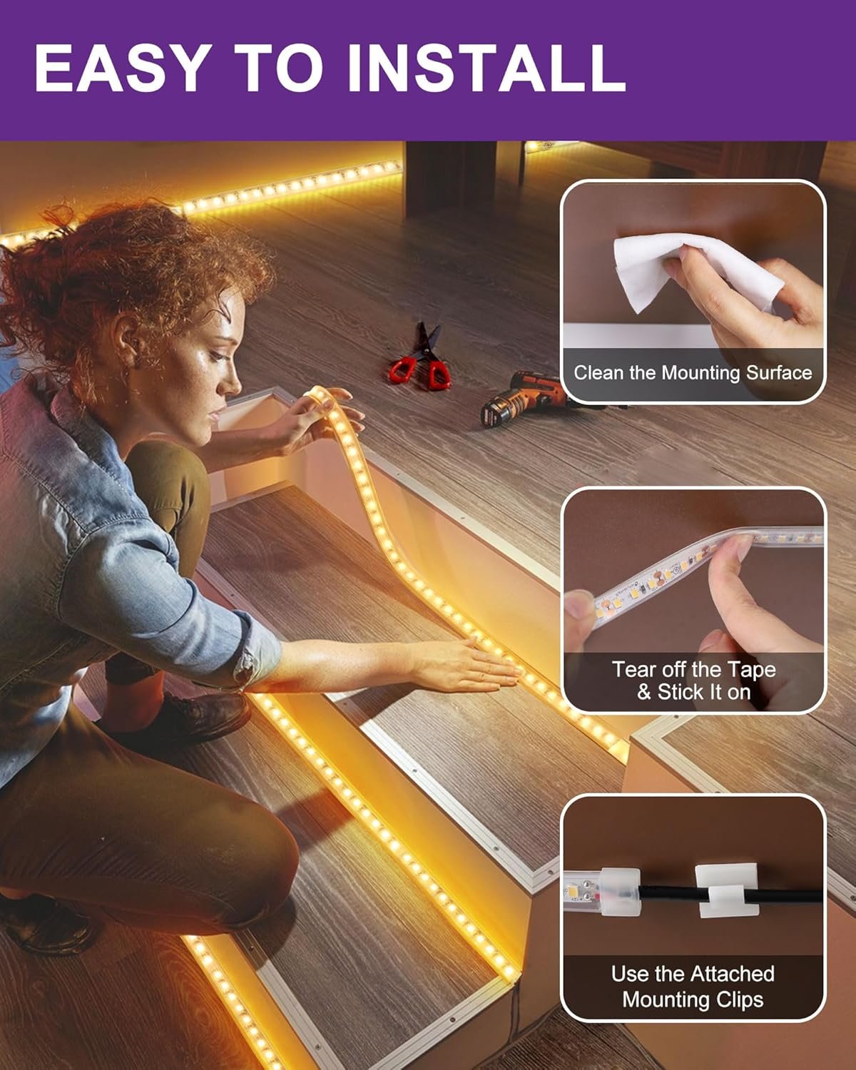 - CREATE A RELAXING AMBIANCE FOR ANY SPACE: Our 3000K warm white LED tape lights can be dimmable with a compatible dimmer. These led strips are perfect for various indoor/outdoor uses including under cabinet lighting in kitchens, toe-kicks lighting in hallways, stairway lighting