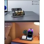 【Safe & Fast Wireless Charging Station】Equipped with 18W fast charger adapter, this charging station provides fast charging even with 3 devices together. This charging station has intelligent charging current control, voltage control, temperature control, foreign object detection and the heat dissipation holes on the back of charging station, this 3 in 1 charging station for apple protect your devices from overcharge damage and ensure safe charging