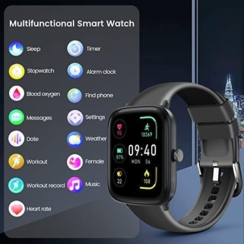 【Your Smart Assistant】- This android smart watch includes more useful features, fitness tracker, pedometer, heart rate monitor, sleep monitor, 20 exercise modes, blood oxygen monitor, call notifications, SMS, and APP messages (note: you cannot reply to messages through the watch), music and camera controls, weather display, sedentary and water reminders, stopwatch, timer, calculator, alarm clock, etc. Meet your daily needs