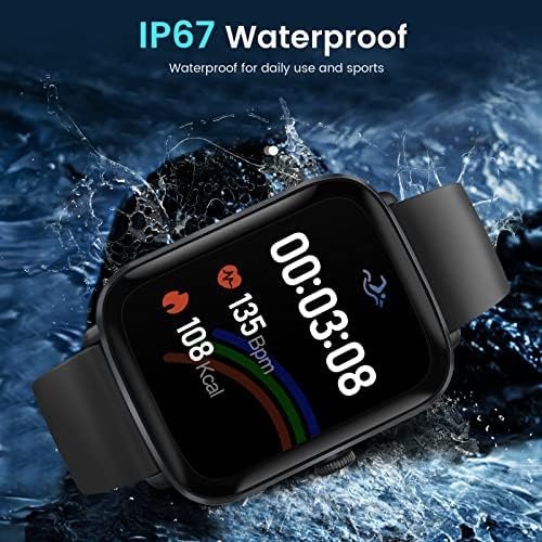 【Wide Compatibility & Long Battery Life】- With a large capacity battery, it only takes 1.5 hours on a single charge. This smart watch is compatible with iO S 8.0, Android 4.4 and above smartphones and meets the IP67 waterproof rating, so you don’t have to worry about wearing it while swimming or sweating during sports