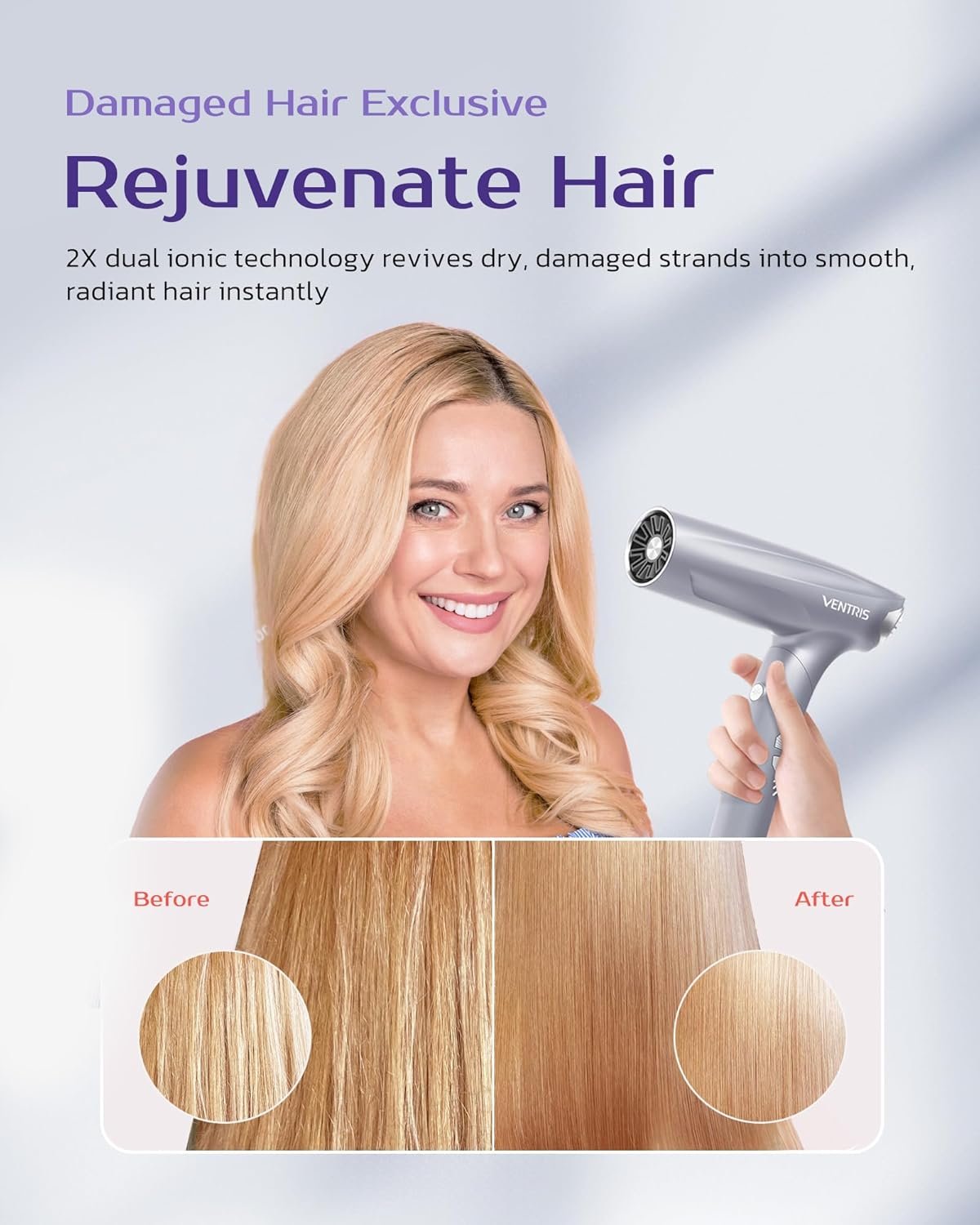 - Ultra-Smooth & Frizz-Free Hair – Our NeutroCare Tech generates 250 million positive & negative ions, eliminating 99% static for silky, sleek hair with a healthy shine.