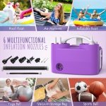 - 【Complete Accessory Set】Our pump comes with a complete accessory set, including 5 inflatable equipment nozzles, 1 extension hose, 2 inflatable ball needles, and 1 ball hose. This allows you to easily inflate air mattresses, swimming rings, yoga balls, inflatable boats, floating toys, basketballs, footballs, volleyballs, and rugby balls. Additionally, it includes a balloon cutter and knotter for convenient DIY balloon creations!